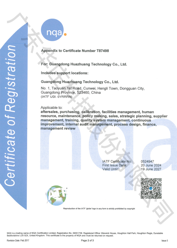 IATF 16949 广东华庄(桃园厂)